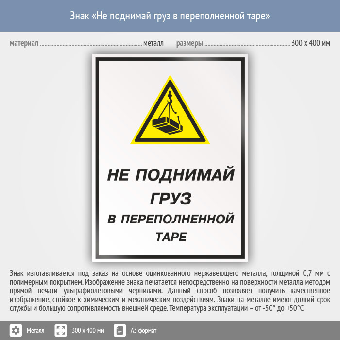 Знак «Не поднимай груз в переполненной таре», КЗ-26 (металл, 300х400 мм) в Верее купить