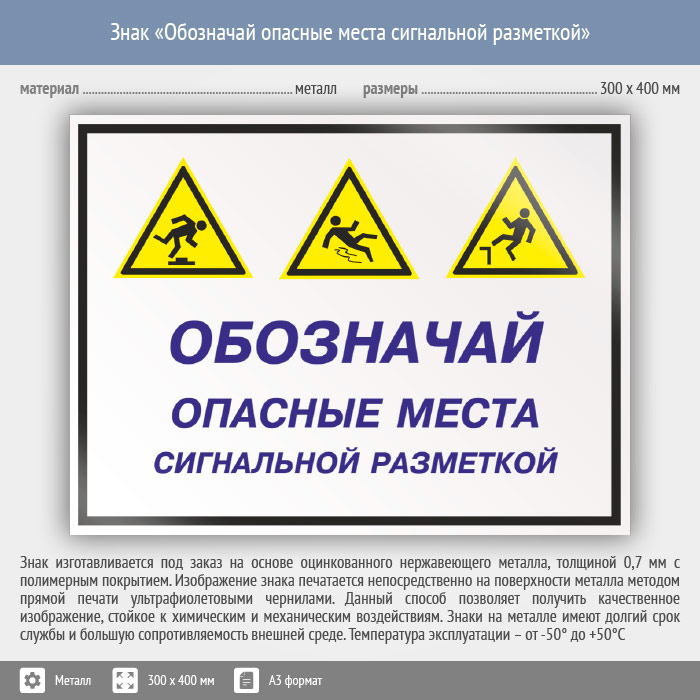 Знак «Обозначай опасные места сигнальной разметкой», КЗ-30 (металл, 400х300 мм) в Верее купить