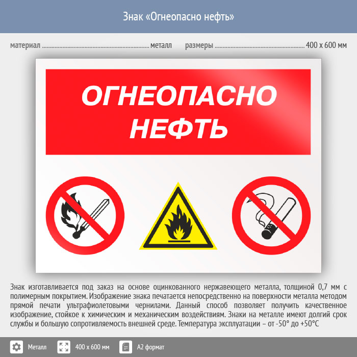 Знак «Огнеопасно нефть», КЗ-31 (металл, 600х400 мм) в Верее купить