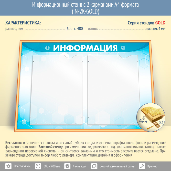 Информационный стенд с 2 карманами А4 формата (IN-2K-GOLD) в Верее купить