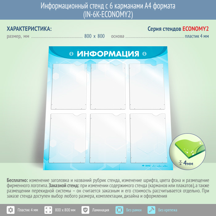 Информационный стенд с 6 карманами А4 формата (IN-6K-ECONOMY2) в Верее купить