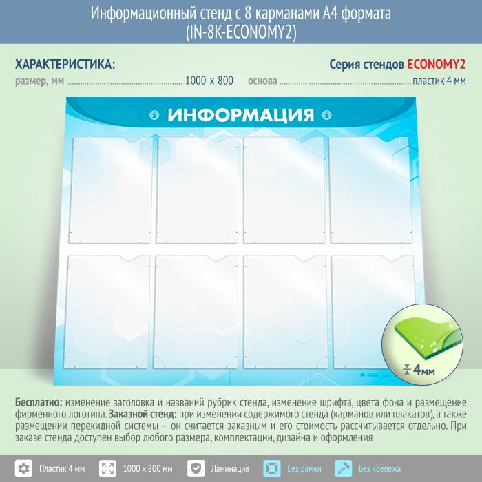 Информационный стенд с 8 карманами А4 формата (IN-8K-ECONOMY2) в Верее купить
