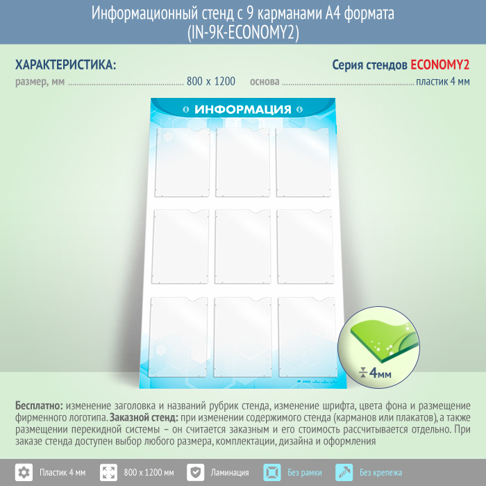 Информационный стенд с 9 карманами А4 формата (IN-9K-ECONOMY2) в Верее купить