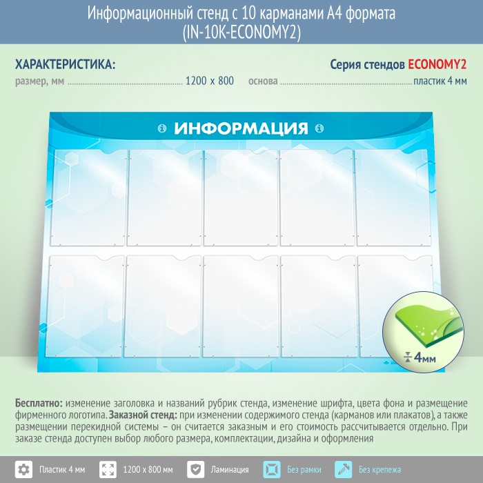 Информационный стенд с 10 карманами А4 формата (IN-10K-ECONOMY2) в Верее купить