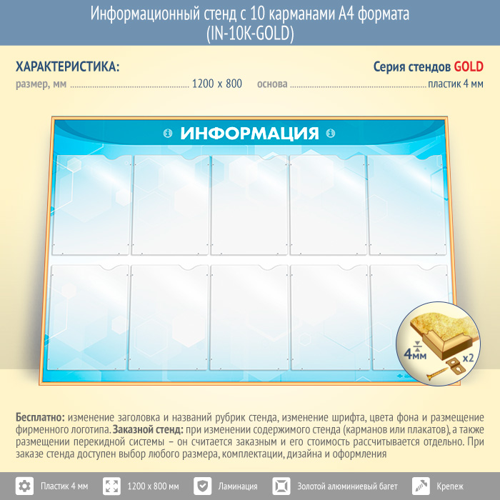 Информационный стенд с 10 карманами А4 формата (IN-10K-GOLD) в Верее купить