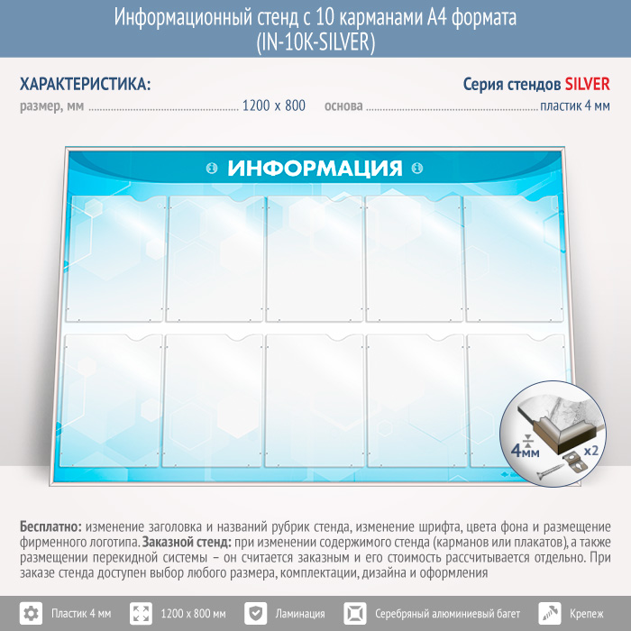 Информационный стенд с 10 карманами А4 формата (IN-10K-SILVER) в Верее купить