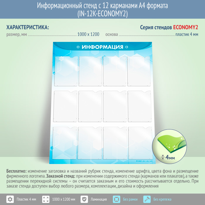 Информационный стенд с 12 карманами А4 формата (IN-12K-ECONOMY2) в Верее купить