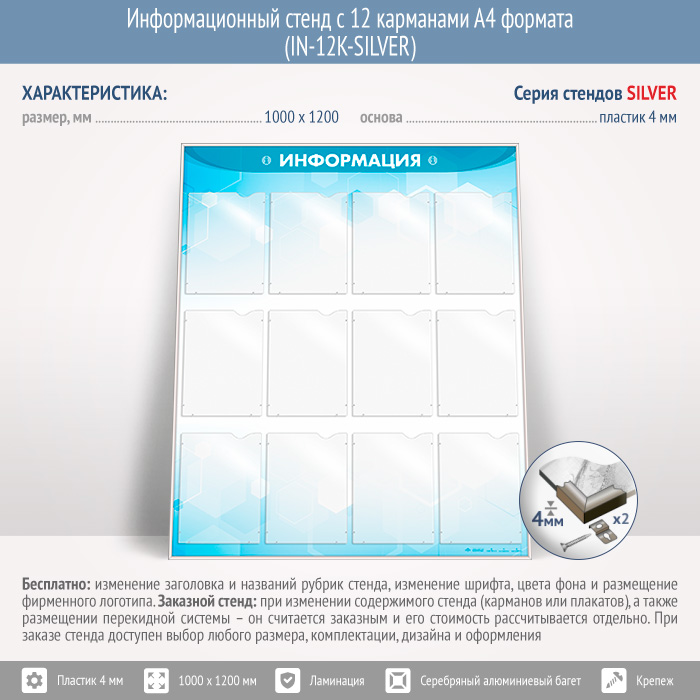 Информационный стенд с 12 карманами А4 формата (IN-12K-SILVER) в Верее купить