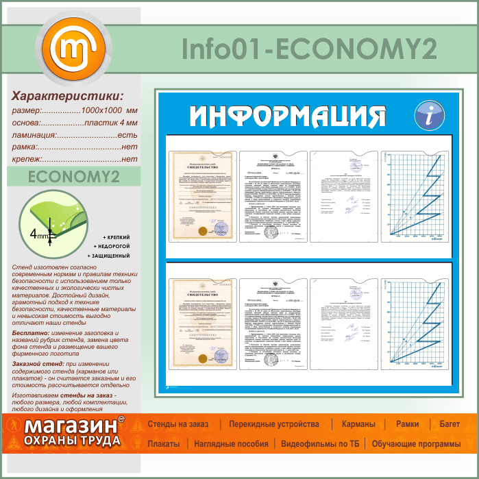 Стенд «Информация» с 8 карманами А4 формата (IN-01-ECONOMY2) в Верее купить