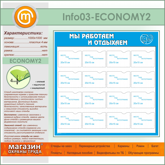 Стенд «Мы работаем и отдыхаем» с 16 карманами А5 формата (IN-03-ECONOMY2) в Верее купить