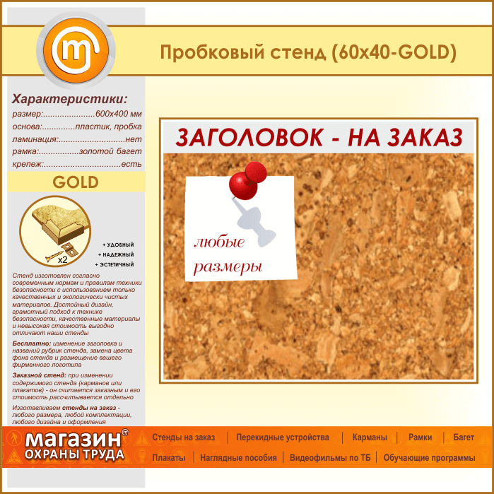 Пробковая доска с заголовком, 60х40 см (IN-06-GOLD) в Верее купить