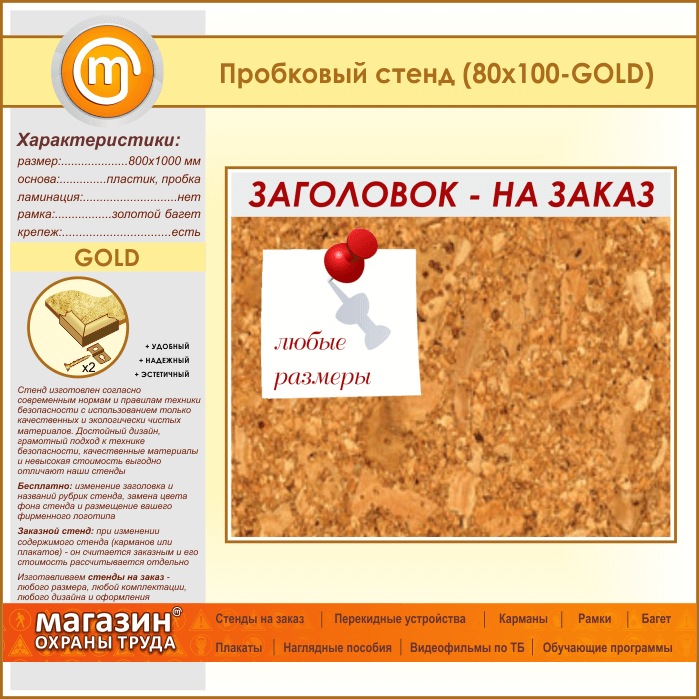Пробковая доска с заголовком, 100х80 см (IN-06-GOLD) в Верее купить