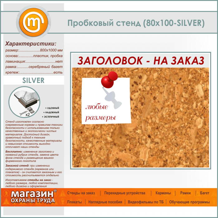 Пробковая доска с заголовком, 100х80 см (IN-06-SILVER) в Верее купить