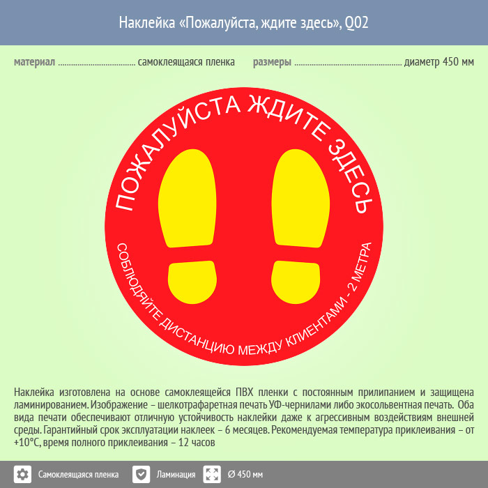 Наклейка на пол «Пожалуйста, ждите здесь», Q02 (пленка c ламинированием, диаметр 450 мм) в Верее купить