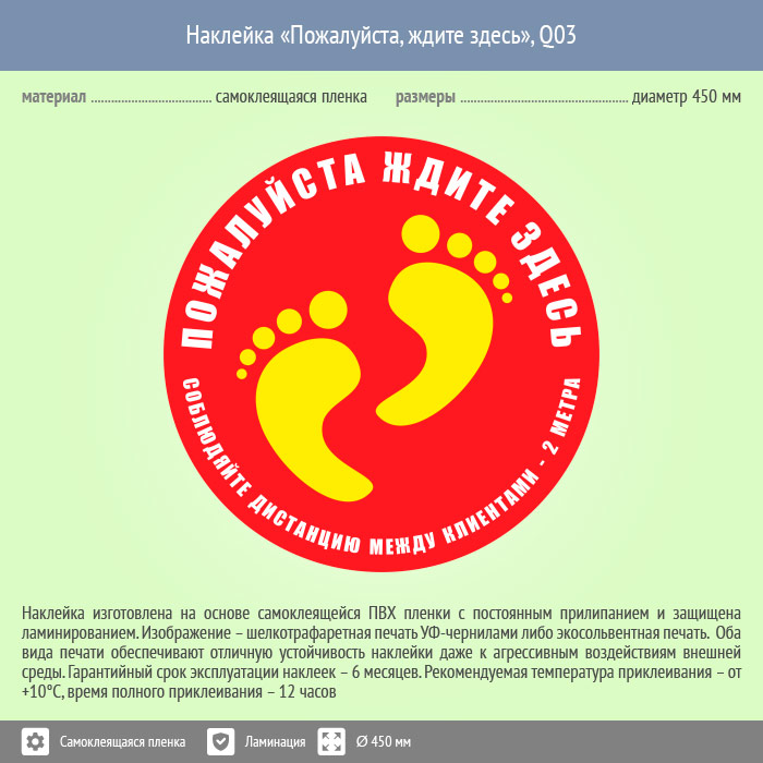Наклейка на пол «Пожалуйста, ждите здесь», Q03 (пленка c ламинированием, диаметр 450 мм) в Верее купить
