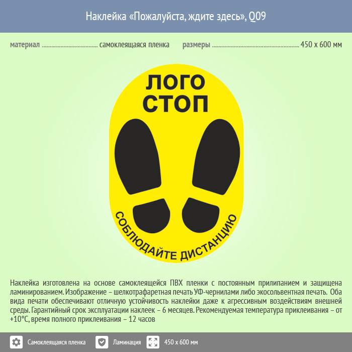 Наклейка на пол «Пожалуйста, ждите здесь», Q09 (пленка c ламинированием, 450х600 мм) в Верее купить