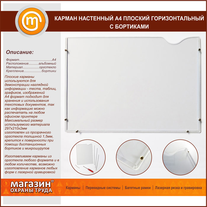 Карман настенный А4 плоский горизонтальный с бортиками в Верее купить
