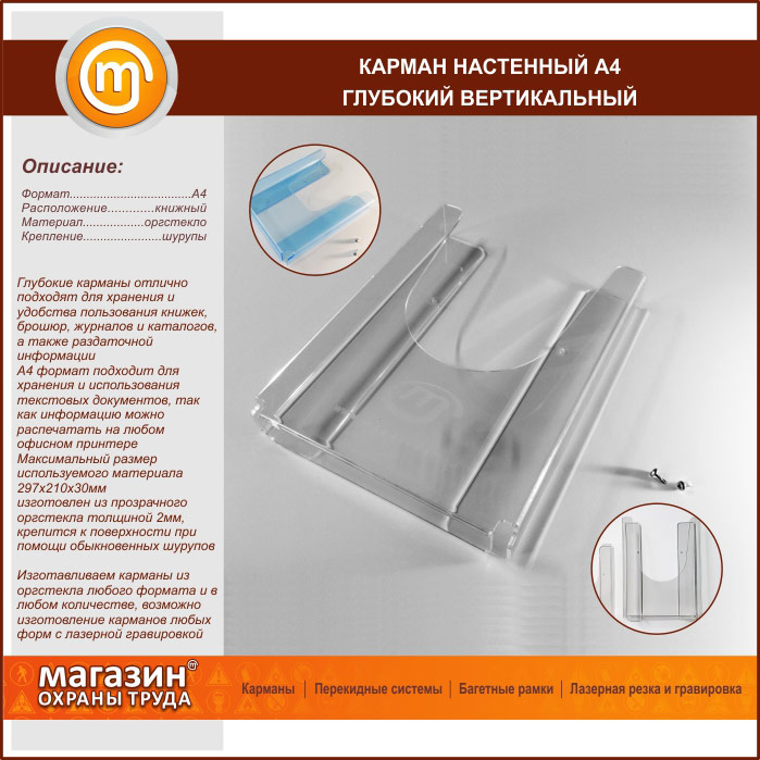 Карман настенный А4 объемный вертикальный в Верее купить