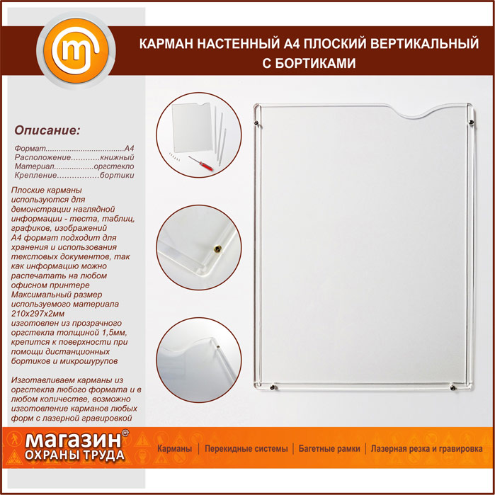 Карман настенный А4 плоский вертикальный с бортиками в Верее купить