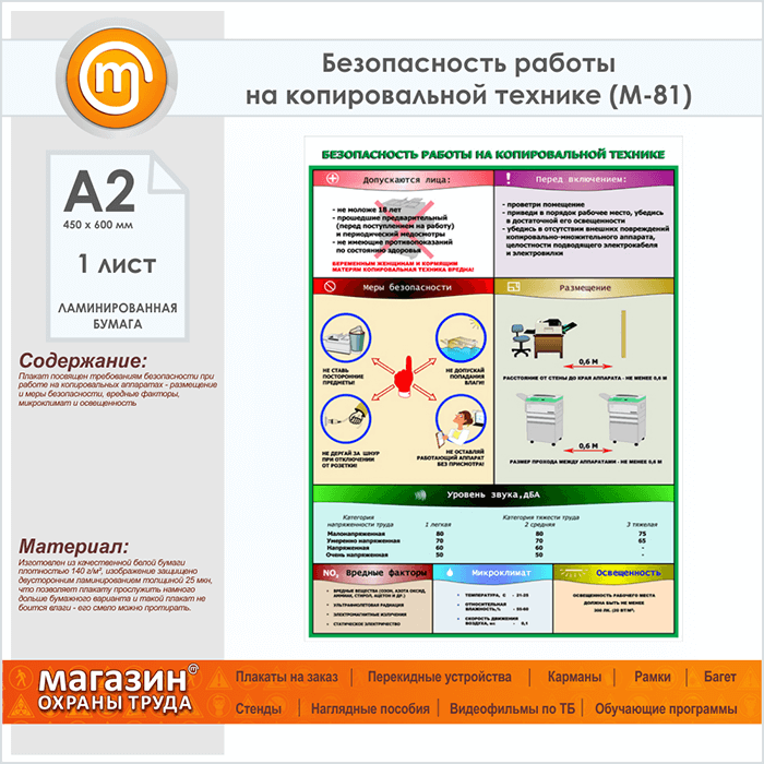 Плакат «Безопасность работы на копировальной технике» (М-81, ламинированная бумага, А2, 1 лист) в Верее купить