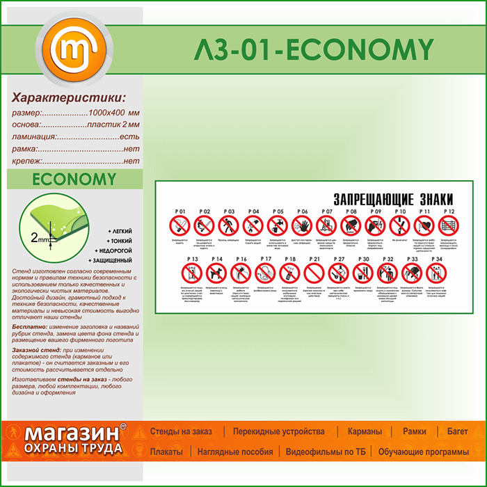 Стенд «Запрещающие знаки» (LZ-01-ECONOMY) в Верее купить