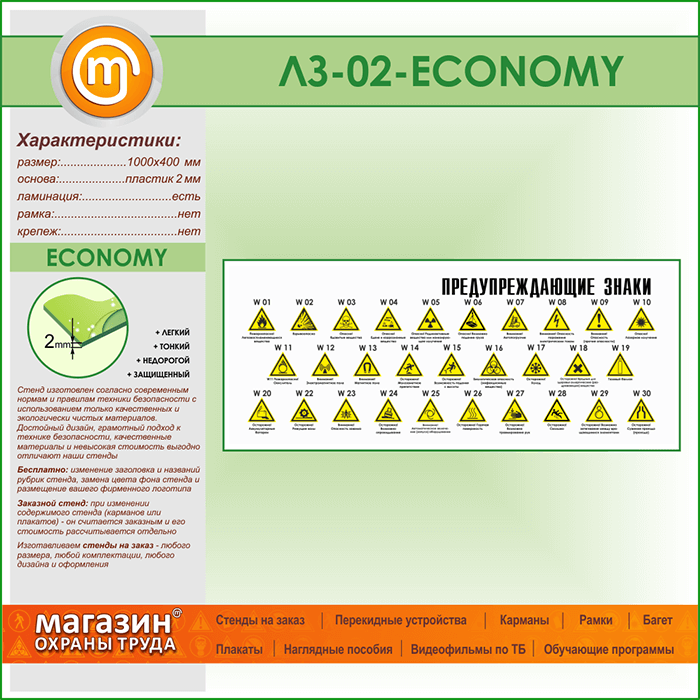 Стенд «Предупреждающие знаки» (LZ-02-ECONOMY) в Верее купить