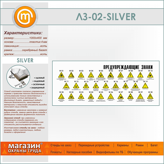 Стенд «Предупреждающие знаки» (LZ-02-SILVER) в Верее купить