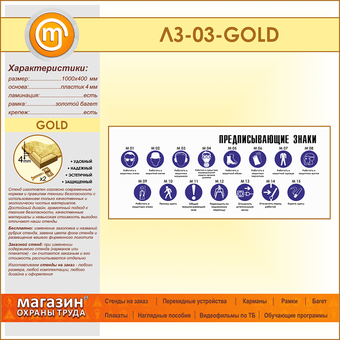 Стенд «Предписывающие знаки» (LZ-03-GOLD) в Верее купить