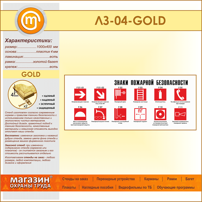 Стенд «Знаки пожарной безопасности» (LZ-04-GOLD) в Верее купить