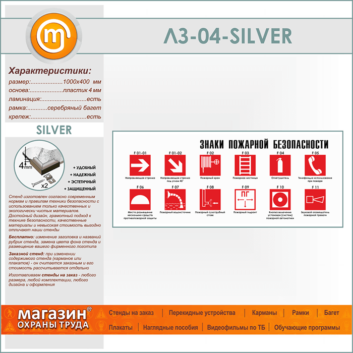 Стенд «Знаки пожарной безопасности» (LZ-04-SILVER) в Верее купить
