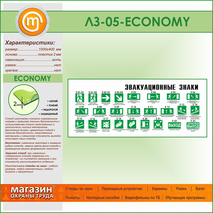 Стенд «Эвакуационные знаки» (LZ-05-ECONOMY) в Верее купить