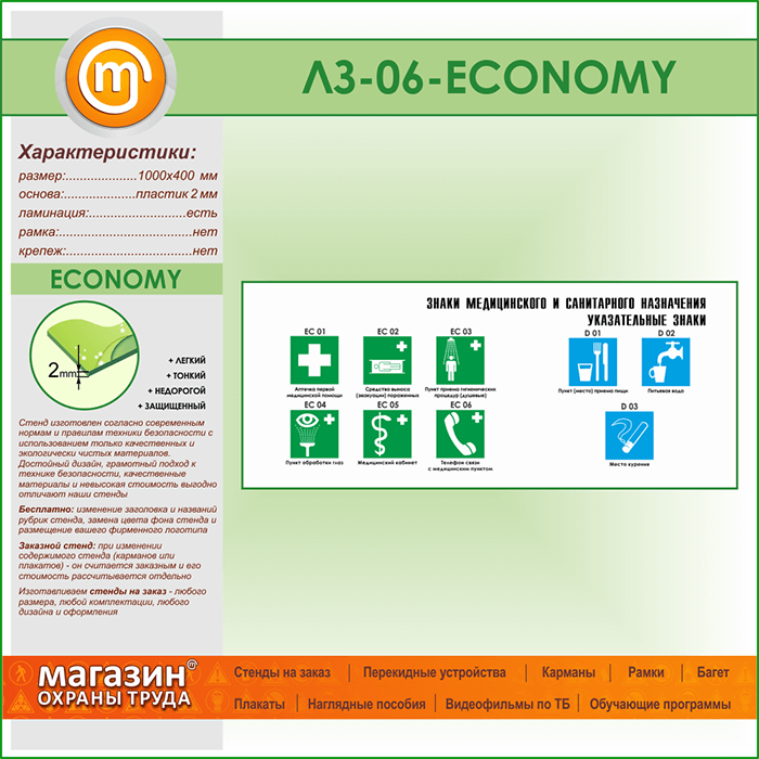 Стенд «Знаки медицинского и санитарного назначения. Указательные знаки» (LZ-06-ECONOMY) в Верее купить