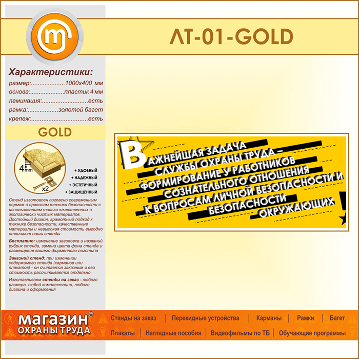 Лозунг «Важнейшая задача службы охраны труда...» (LT-01-GOLD) в Верее купить