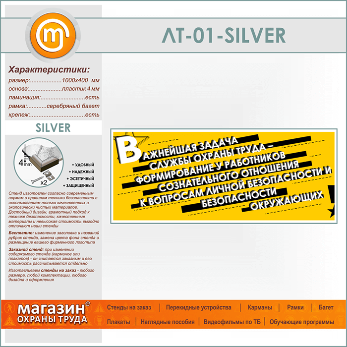 Лозунг «Важнейшая задача службы охраны труда...» (LT-01-SILVER) в Верее купить