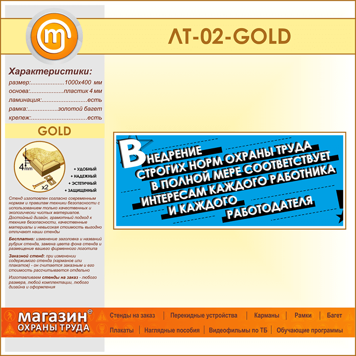 Лозунг «Внедрение строгих норм охраны труда...» (LT-02-GOLD) в Верее купить