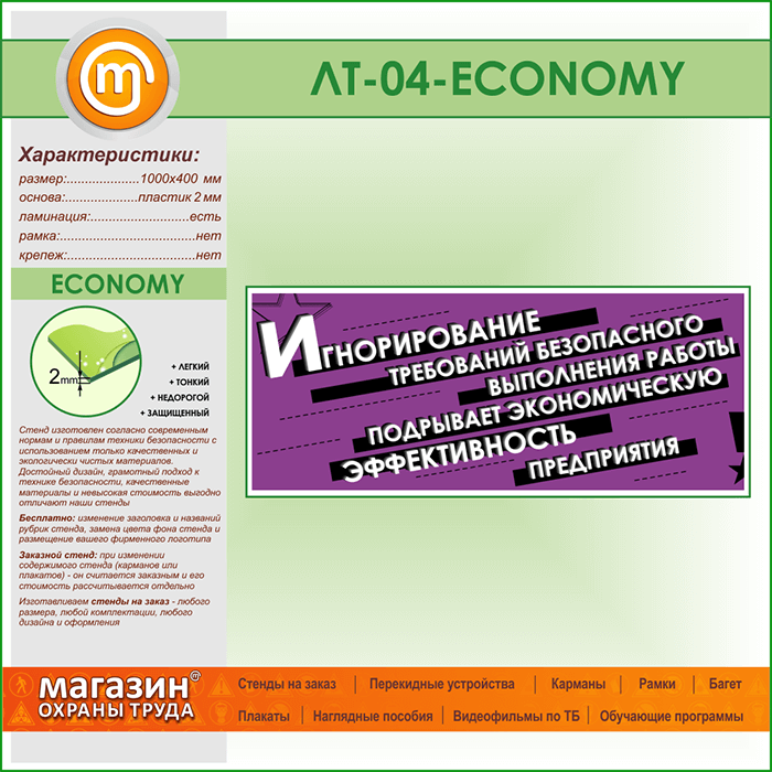 Лозунг «Игнорирование безопасного выполнения работы...» (LT-04-ECONOMY) в Верее купить