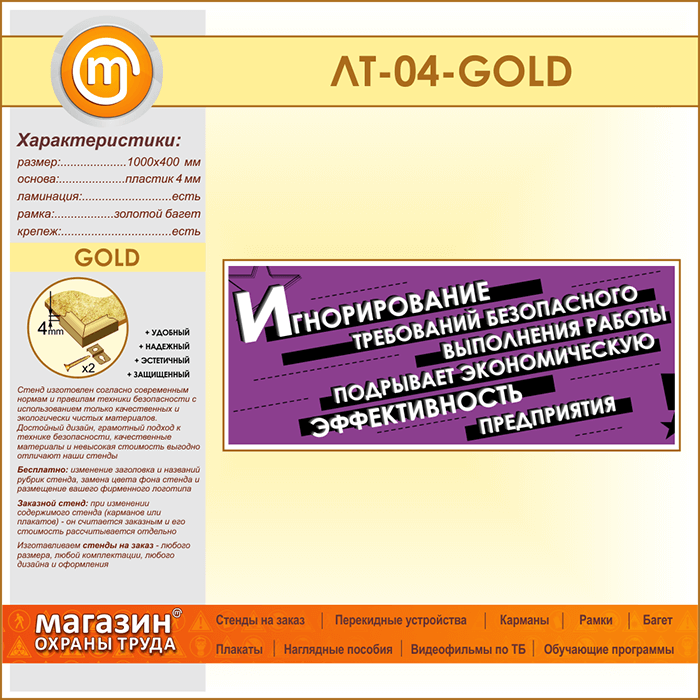 Лозунг «Игнорирование безопасного выполнения работы...» (LT-04-GOLD) в Верее купить