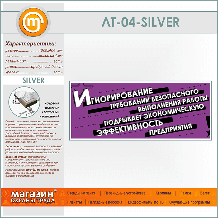 Лозунг «Игнорирование безопасного выполнения работы...» (LT-04-SILVER) в Верее купить