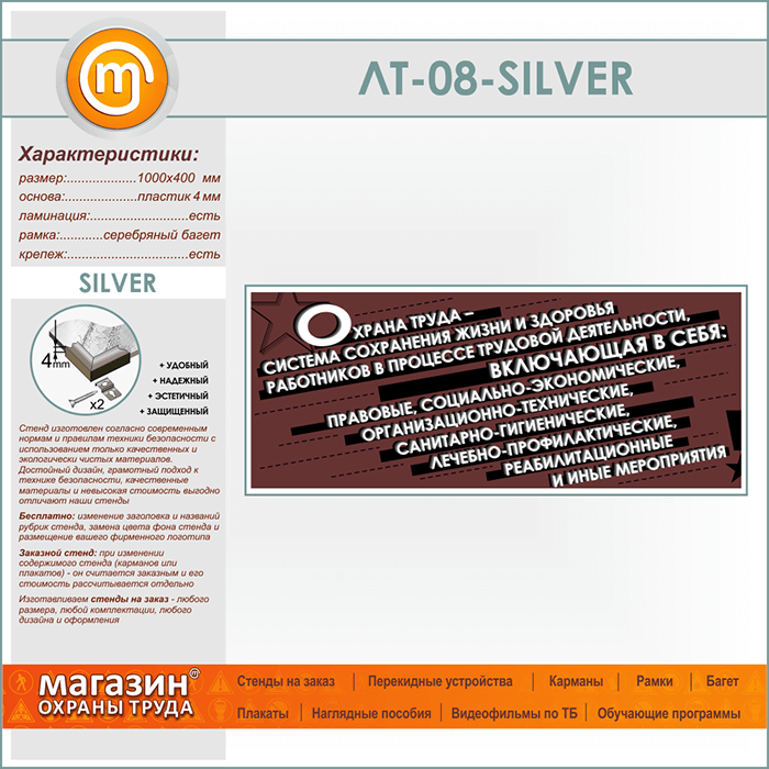 Лозунг «Охрана труда - система сохранения жизни и здоровья...» (LT-08-SILVER) в Верее купить