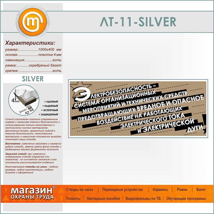 Лозунг «Электробезопасность - система мероприятий...» (LT-11-SILVER) в Верее купить