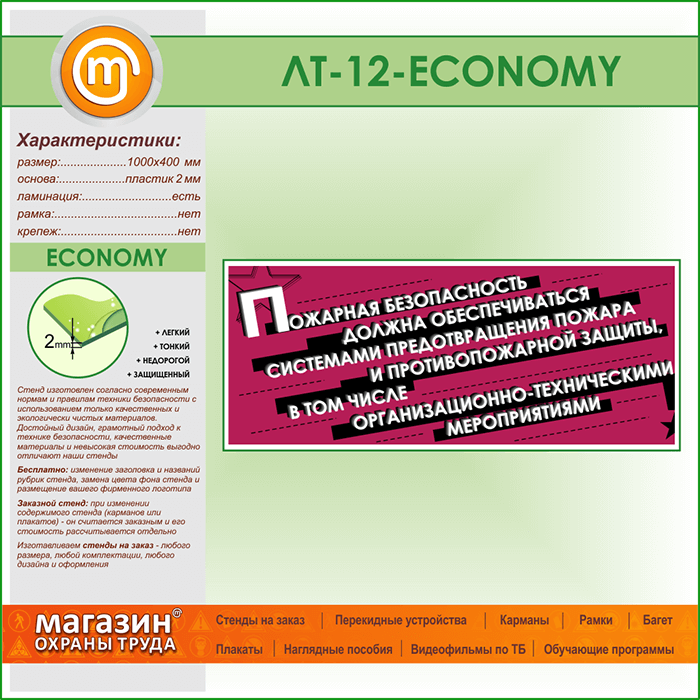 Лозунг «Пожарная безопасность должна обеспечиваться...» (LT-12-ECONOMY) в Верее купить