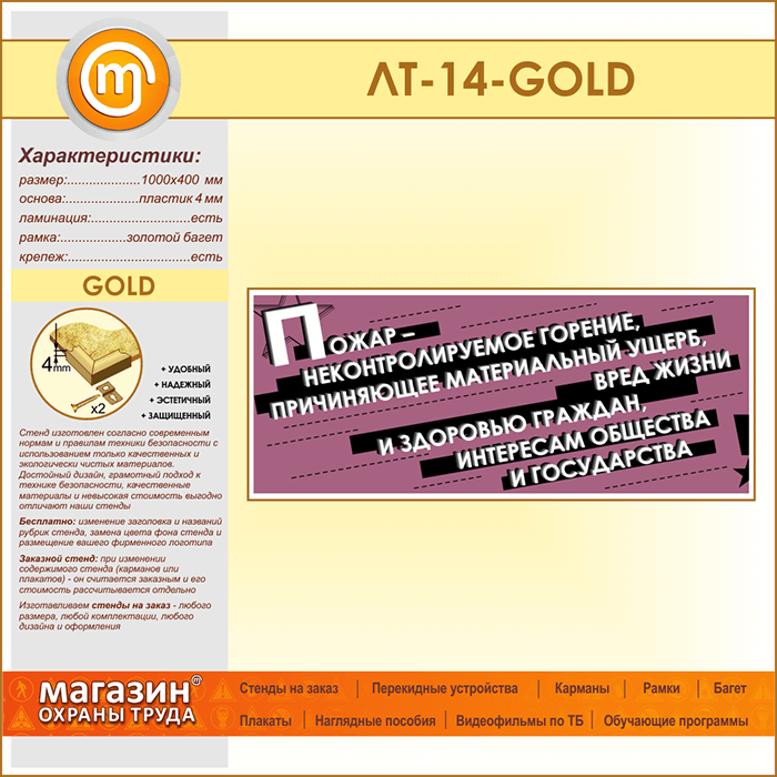 Лозунг «Пожар - неконтроллируемое горение...» (LT-14-GOLD) в Верее купить