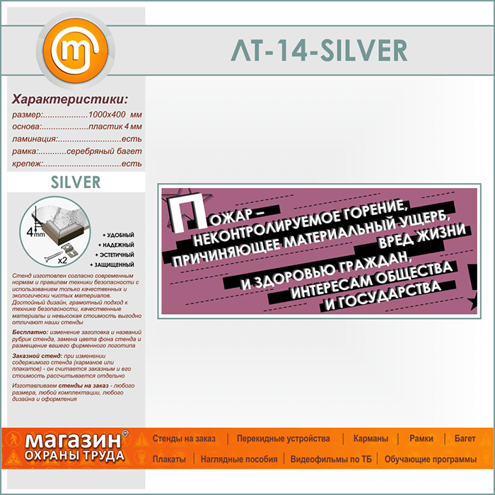 Лозунг «Пожар - неконтроллируемое горение...» (LT-14-SILVER) в Верее купить