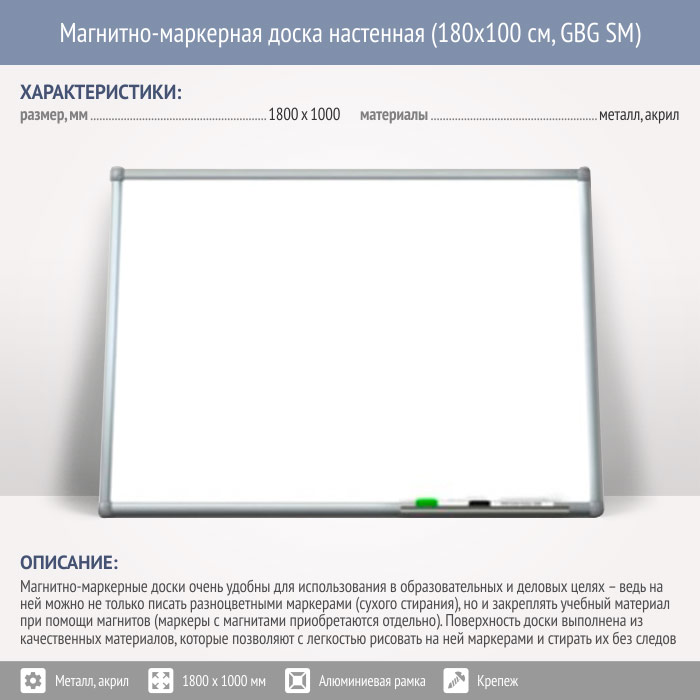 Магнитно-маркерная доска настенная (180x100 см, GBG SM) в Верее купить