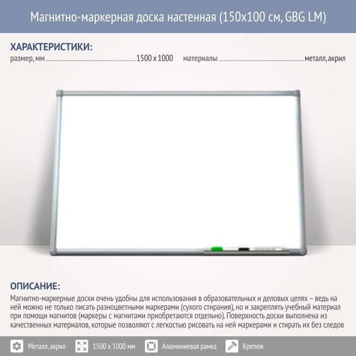Магнитно-маркерная доска настенная (150x100 см, GBG LM) в Верее купить