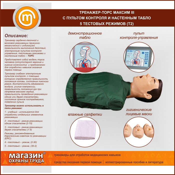 Тренажер-манекен «Максим» III с пультом контроля, настенным табло и компьютерной программой, 4 тестовых режима (Т12К) | Тренажер-манекен «Максим» III с пультом контроля, настенным табло и компьютерной программой, 4 тестовых режима (Т12К) |