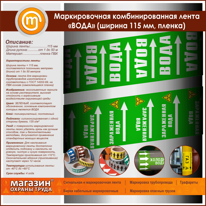 Маркировочная комбинированная лента «ВОДА» (ширина 115 мм, самоклеящаяся плёнка) в Верее купить