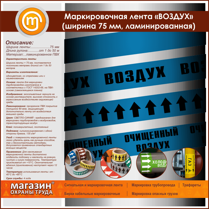 Маркировочная лента «ВОЗДУХ» (ширина 75 мм, самоклеящаяся плёнка с ламинированием) в Верее купить