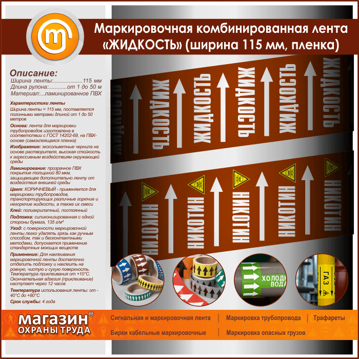 Маркировочная комбинированная лента «ЖИДКОСТЬ» (ширина 115 мм, самоклеящаяся плёнка) в Верее купить
