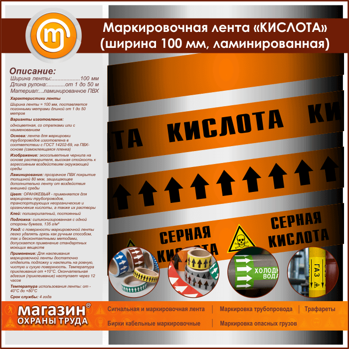 Маркировочная лента «КИСЛОТА» (ширина 100 мм, самоклеящаяся плёнка) в Верее купить